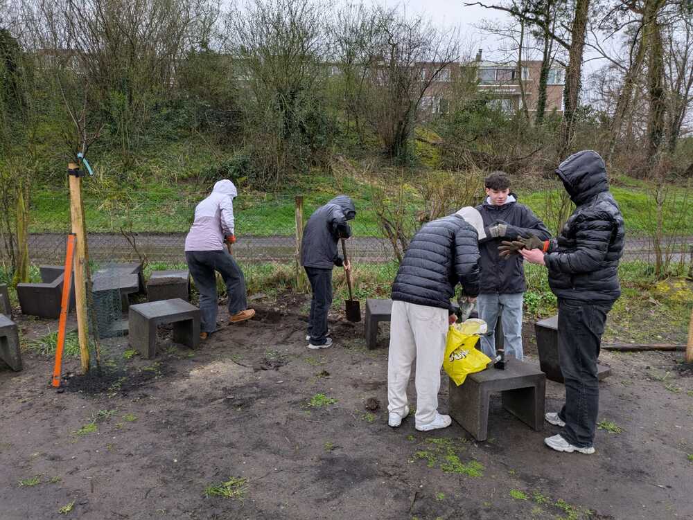 Ondanks de regen kijken we terug op een geslaagde dag. Het was leuk, zinvol en vooral mooi om samen aan iets tastbaars te werken voor een organisatie die daar echt blij mee is.
